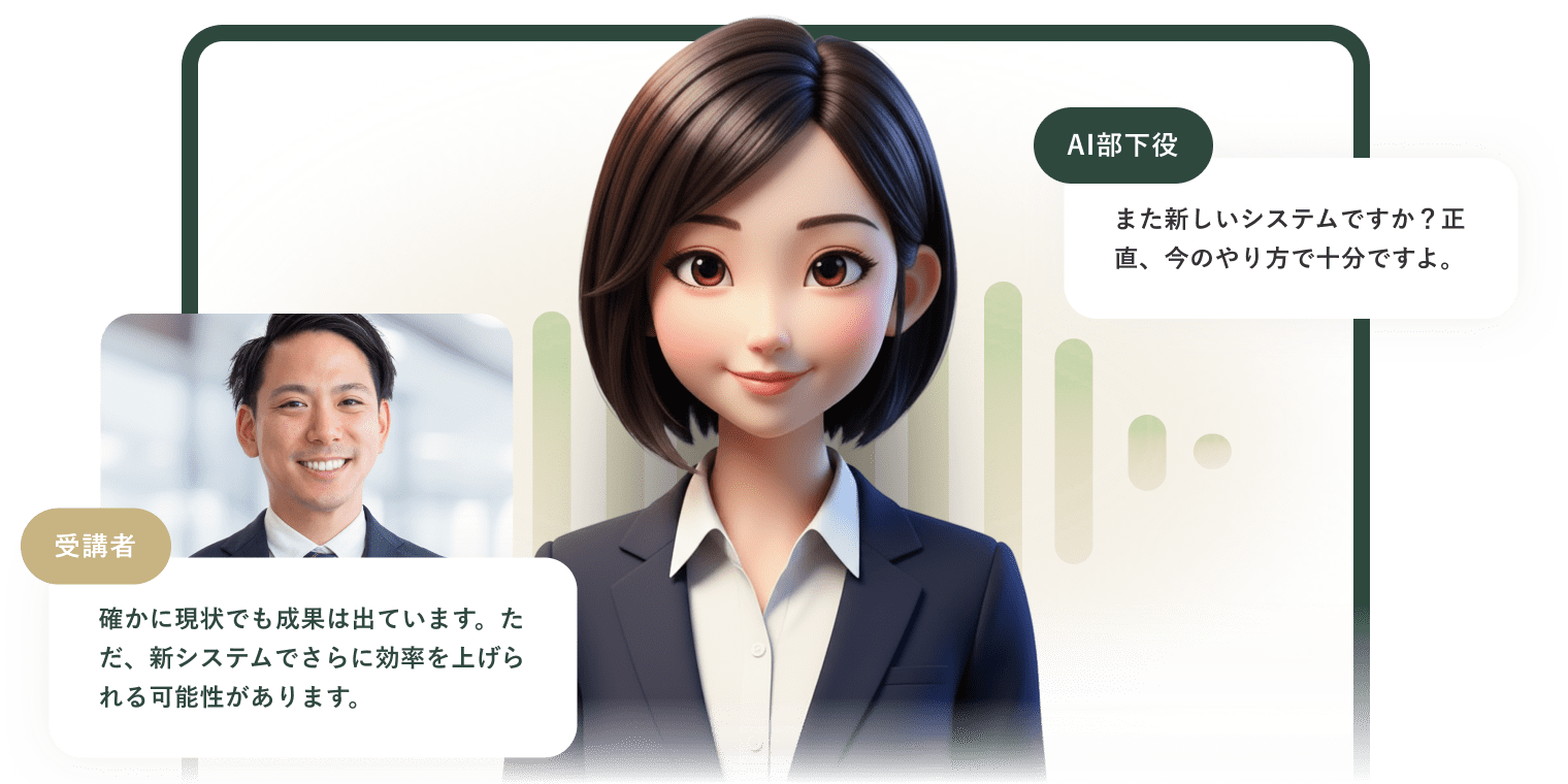 AIによるトレーニングを活用することで、現場の管理職や人事の負担を大幅に軽減し、従業員の成長支援を効率的に継続できます。AIが実践を促す対話や振り返りの機会を提供し、管理職が本来取り組むべき業務に集中できる環境を実現します。